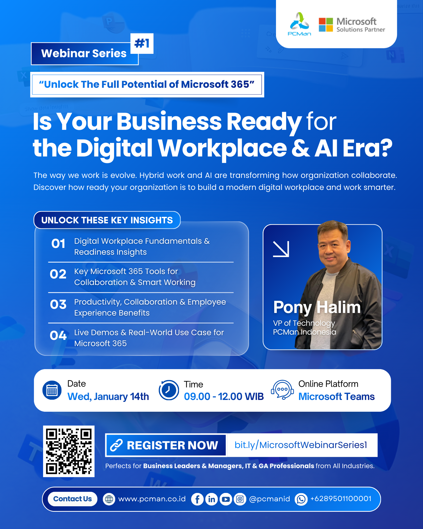 In this first webinar of the series, we will explore what a modern digital workplace really means and how Microsoft 365 helps organizations empower people to work smarter, collaborate better, and adapt to the AI era. This session is designed to help leaders and teams understand the foundation of a digital workplace and see how everyday work can be transformed using Microsoft 365.