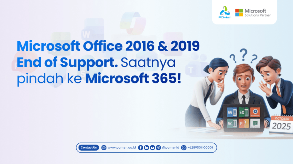 Akhir dukungan Office 2016 dan 2019 bukan hanya perubahan teknis — tetapi juga keputusan strategis untuk bisnis. Jika diperlukan, PCMan dapat menyediakan tim teknis untuk mendampingi seluruh proses.